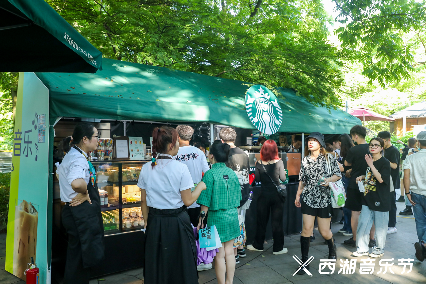 当然现场也少不了美食餐饮区,好吃好喝应有尽有。在音乐节玩耍一下午后,最好的休闲方式就是叫上身边好友,一起听音乐吃点美食,把一天的疲倦都说尽。星巴克、一鸣、德克士......吃饱了才能玩得尽兴。