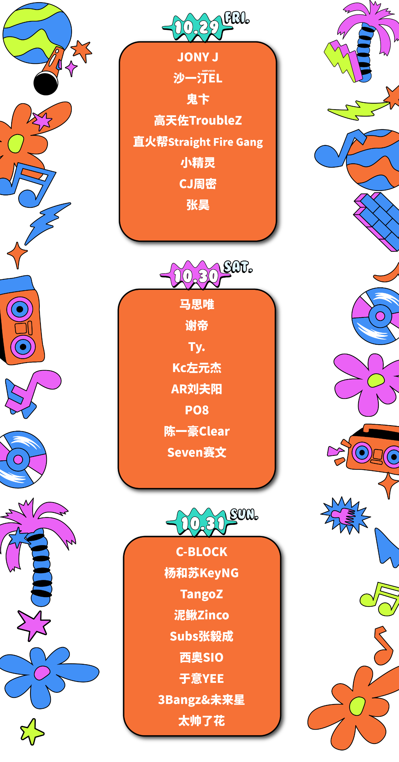 10月29日-10月31日,2021 X-Hood音乐节,三天全嘻哈盛宴,JONY J、C-BLOCK、马思唯、谢帝、杨和苏KeyNG、Ty. 、沙一汀EL、鬼卞、TangoZ等25组艺人,将用说唱Show出他们的态度。